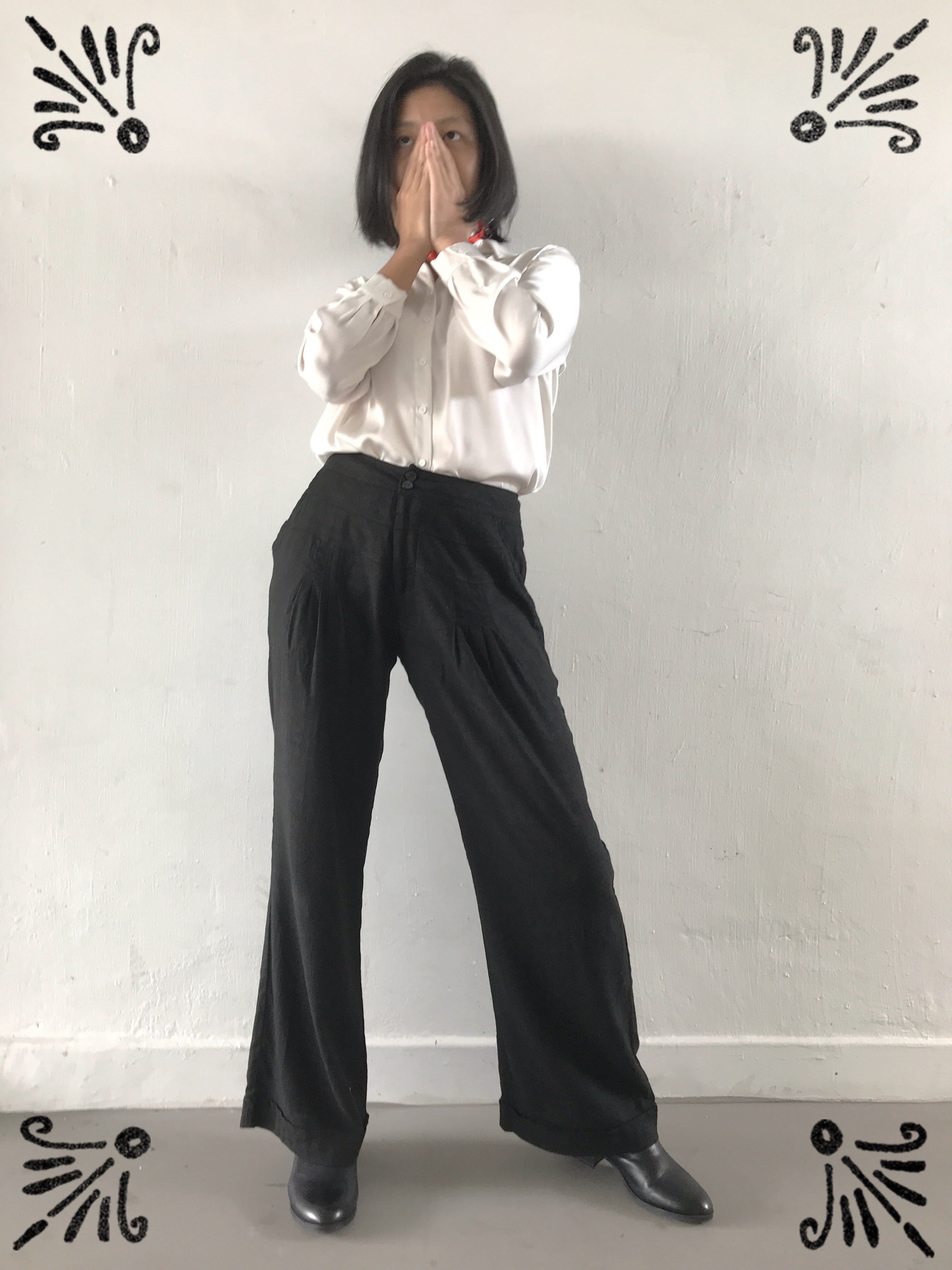 Moving on to the key piece that makes the look so outdated and old man-ish, is the pair of baggy black trousers. Something is wrong with me, but I love this pair of hand-me-down trousers because firstly trousers=workplace=next on my strange addiction. I really don’t think something like this exists in everyon’s wardrobe, but baggy pants changes up the silhouette of the look entirely, and if I were being honest, I love trousers more than jeans because of the breathability of it (which is KEY in Singapore weather)