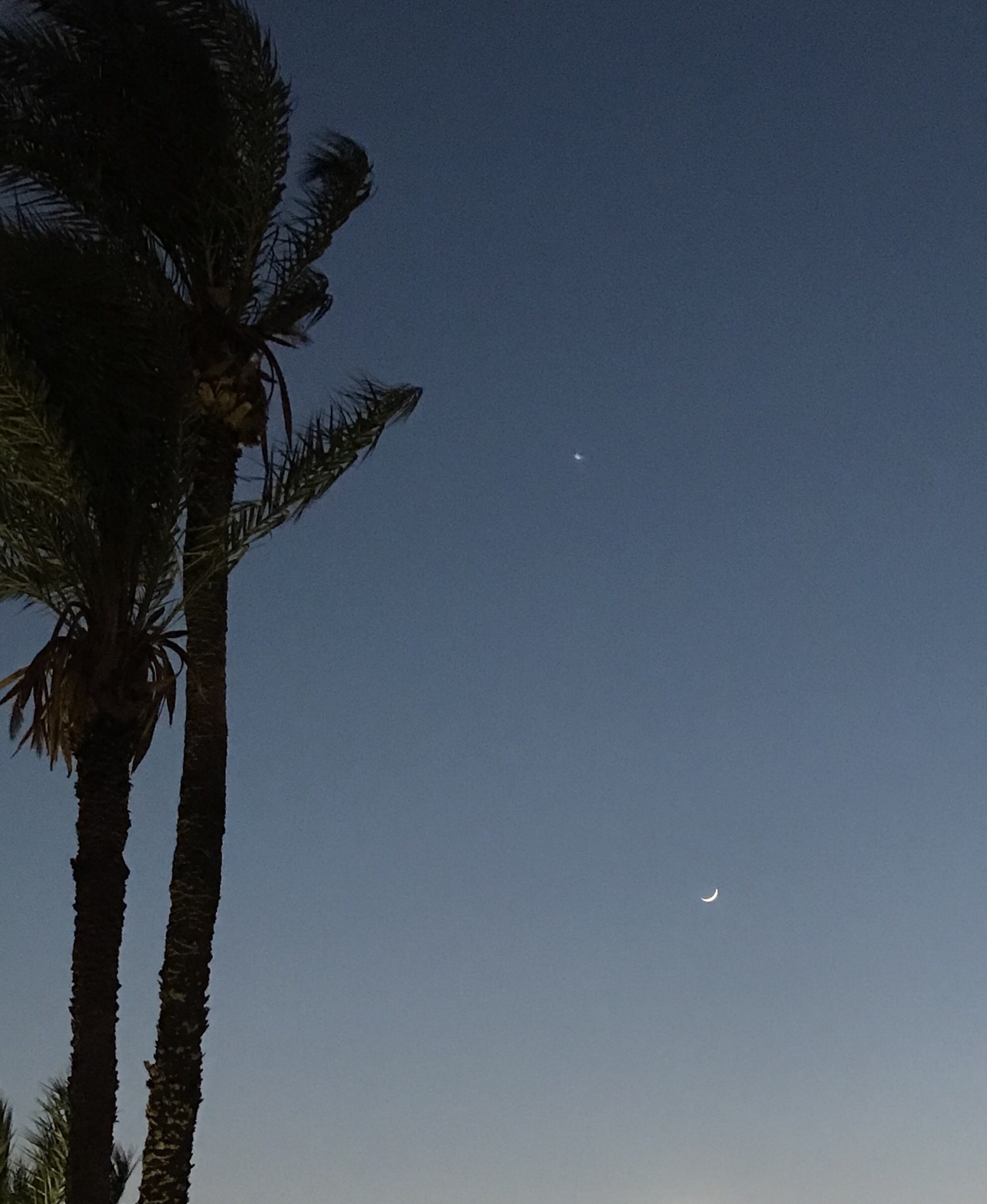 The land is only warm because of the sun, and when night descends, a heavy hand sits onto the earth, releasing the angry heat from the red city walls (hand of Fatimah?). In the hours after sunrise, the sun bakes onto earth again in order to warm up the dead hearth, but in the meantime the atmosphere is cool and cutting, like rough walls brushing against your every movement. In the midday scorch, an occasional shade is so cooling it might be sweet. The parched bush, or the dusty red walls have my thanks.