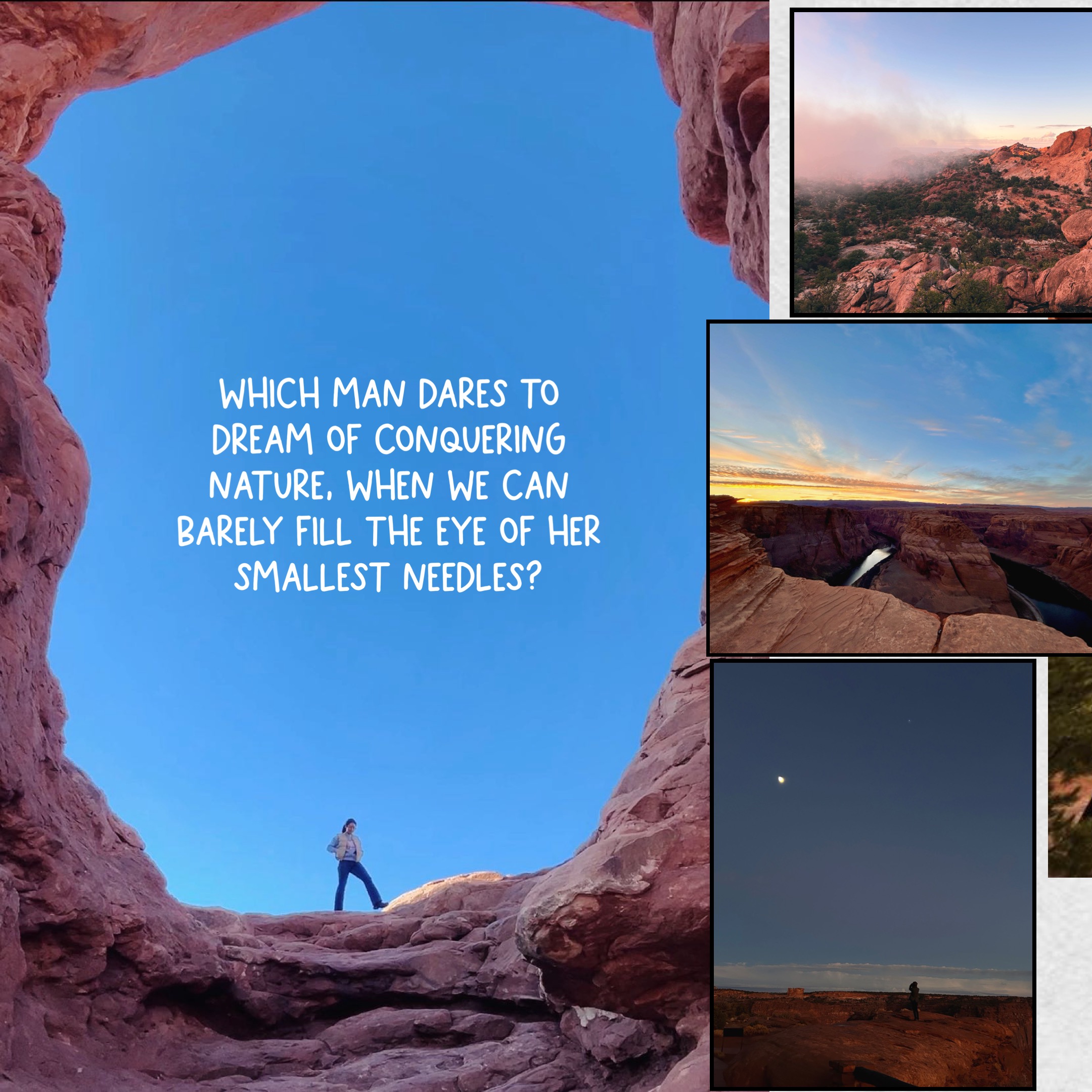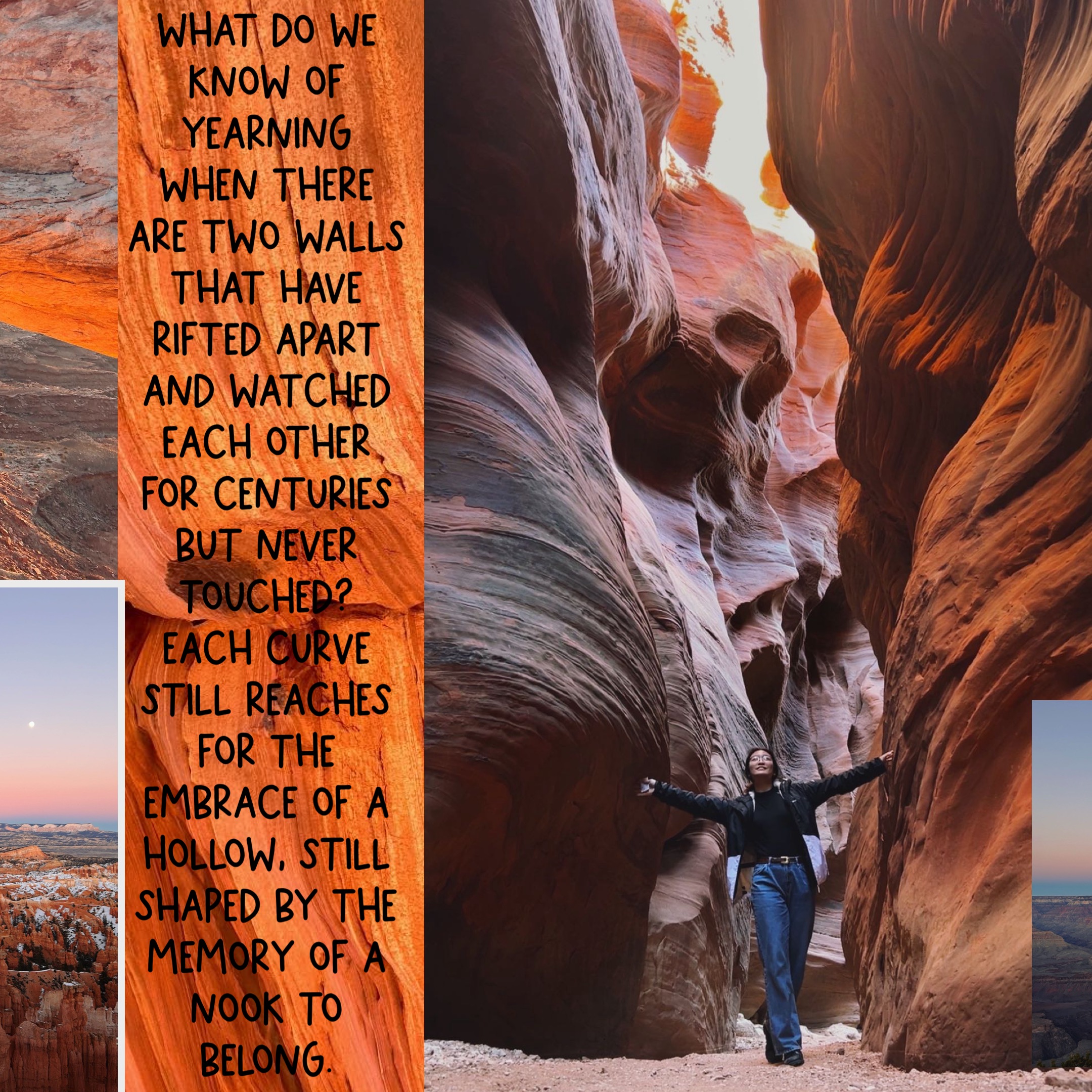 December 21st 2023 to January 7th 2024, I enjoyed my first ever solo-trip into the American wilderness. I cannot even remember how this trip was conceived beyond the desire to be alone for a long time. Why Utah? Why Sequoia? Who knows when and how the seeds were planted in me between the hours I squeezed for sleep and the brutal business of a Harvard semester. I think the romanticism of travel had long died in me from the too many long-haul flights and the discomfort of dry air and TSA lines, but I knew that this trip marked something momentous, and thus warranted a proper reflection.
