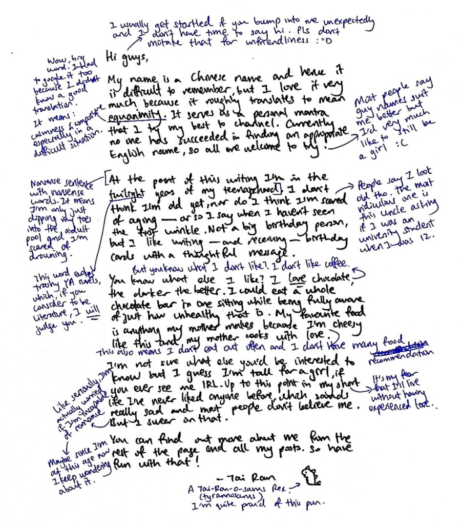 (And I must be frank, I’ve agonised over this introduction for so many drafts I’ve even gotten desperate enough to Google “interesting ways to introduce yourself”. As with all things important, Google failed me. So, we’re back here to the drawing board. Actually that just gave me an idea hold on.)